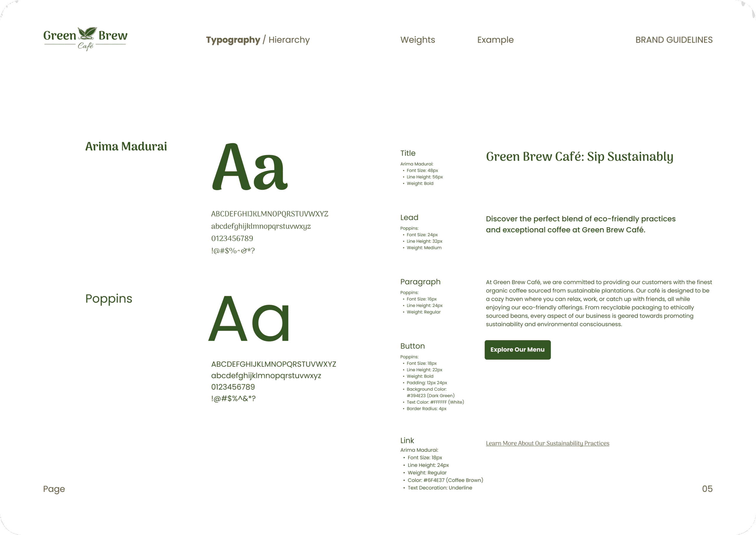 The Green Brew Cafe brand identity is an eco-friendly establishment focused on sustainability. This included designing a logo with a dark green colour scheme, eco-themed iconography, and a blend of serif and cursive fonts for an elegant touch. Created a harmonious colour palette with dark green, cream, lighter green, coffee brown, and beige. Designed recyclable and biodegradable packaging and eco-friendly merchandise. Ensured all elements conveyed the brand’s commitment to sustainability and quality.